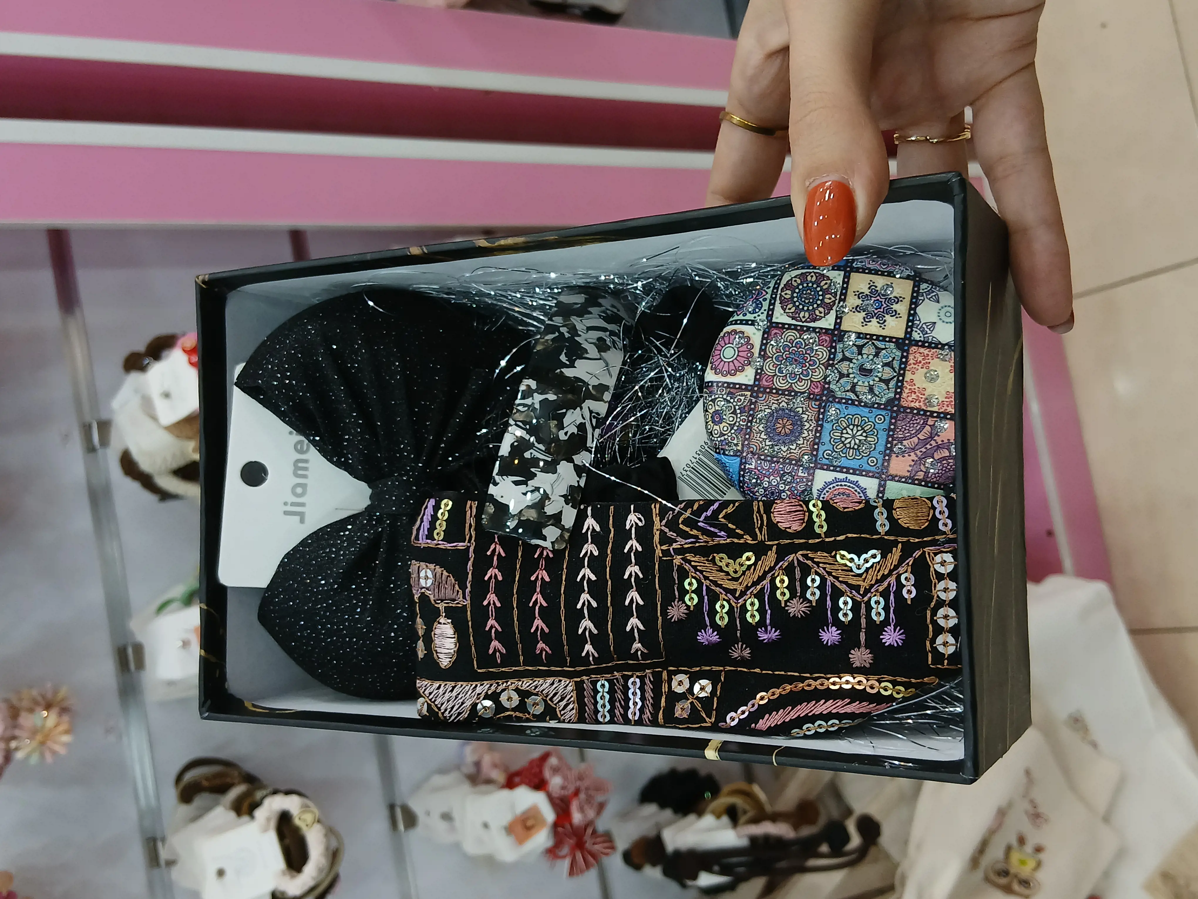 باکس گیره پاپیون ،هد بند سوزن دوزی، کش مو ساده گیره انبری،اینه طرح سنتی، با باکس رایگان