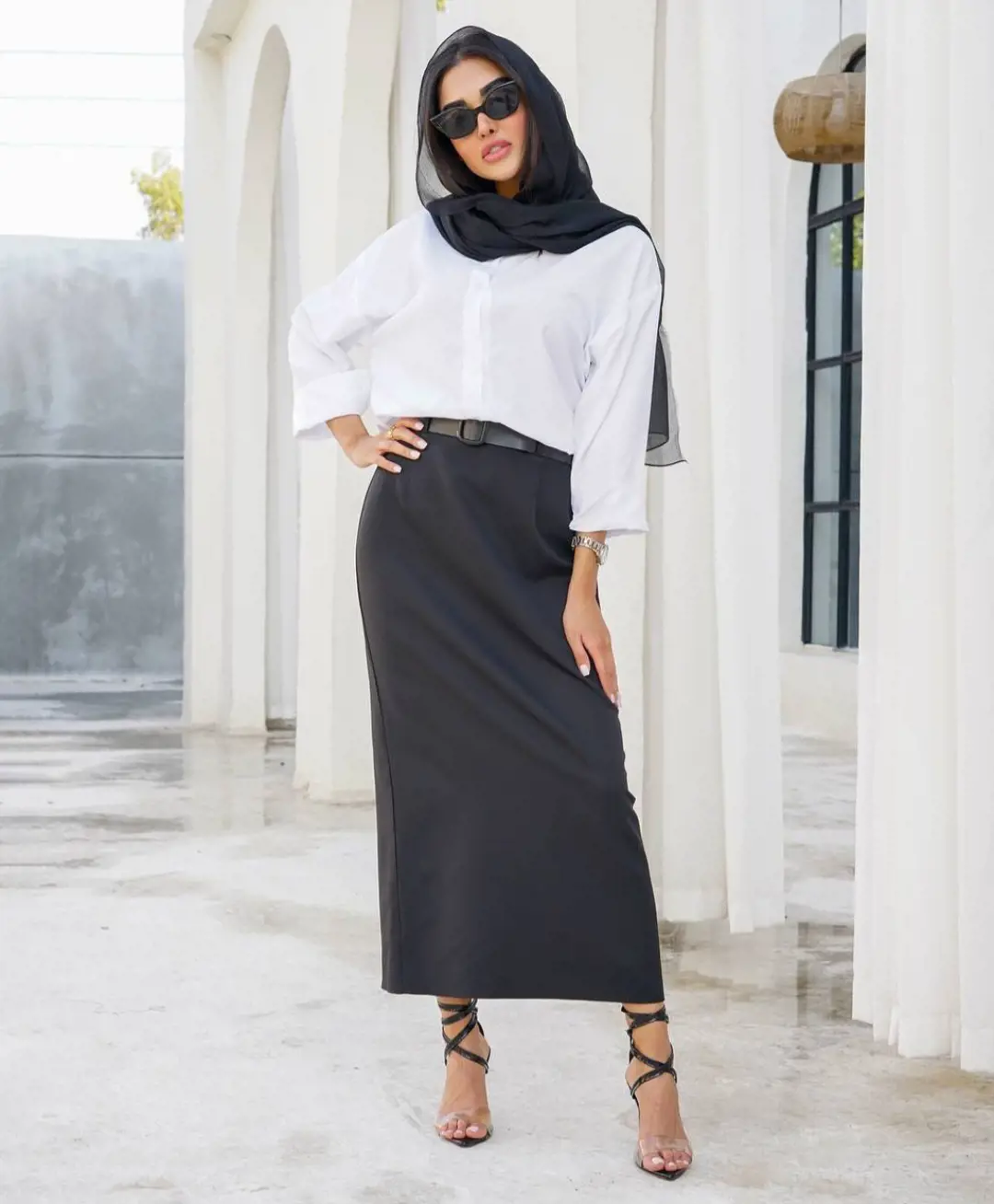 دامن راسته بلند جنس مازراتی رنگ مشکی سایر بندی ۳۸