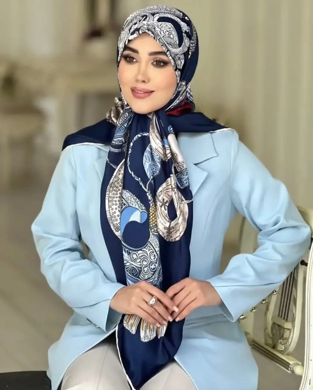 روسری مجلسی ساتن ابریشم وارداتی دوردستدوز در ۴ رنگ لطیف و نرم سر نیست ابعاد این روسری ۱۳۵۱۳۵
