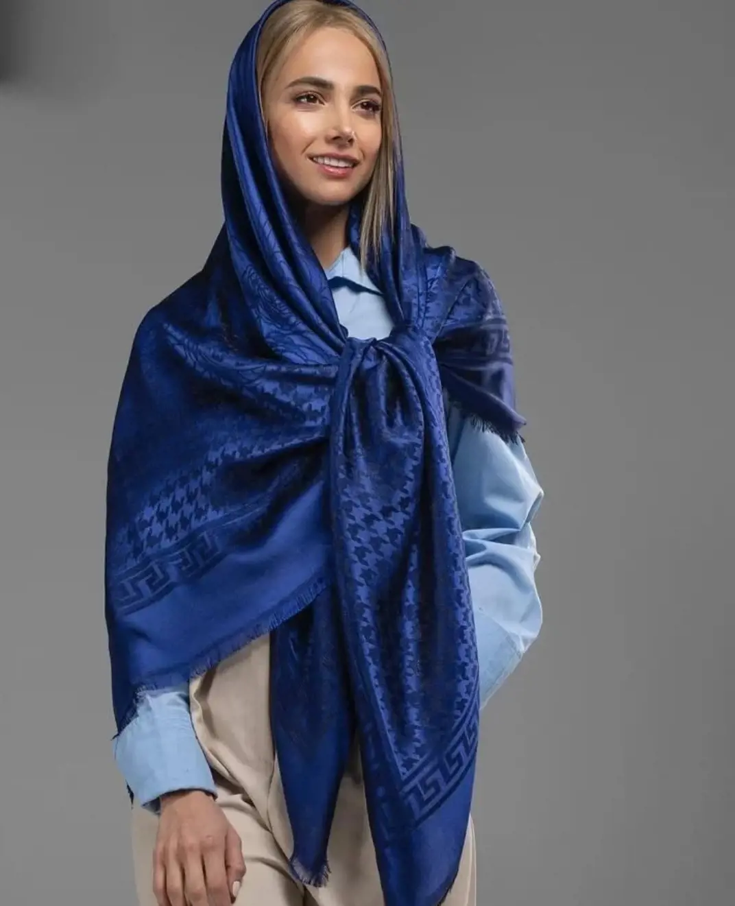 روسری نخ ابریشم تمام لمه ژاکارد دورو دور ریش دورولمه رنگبندی اسلایدها موجوده سر نیست و با ایستایی عالی کاربردی در پاییز قواره ۱۴۰۱۴۰