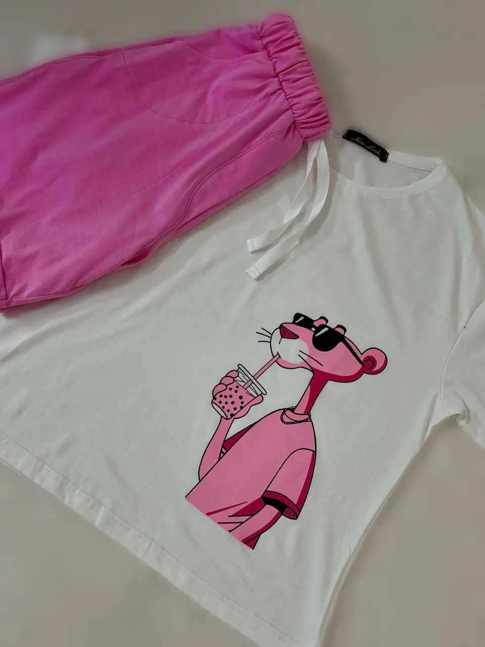 ست تیشرت و شرتک پلنگ صورتی