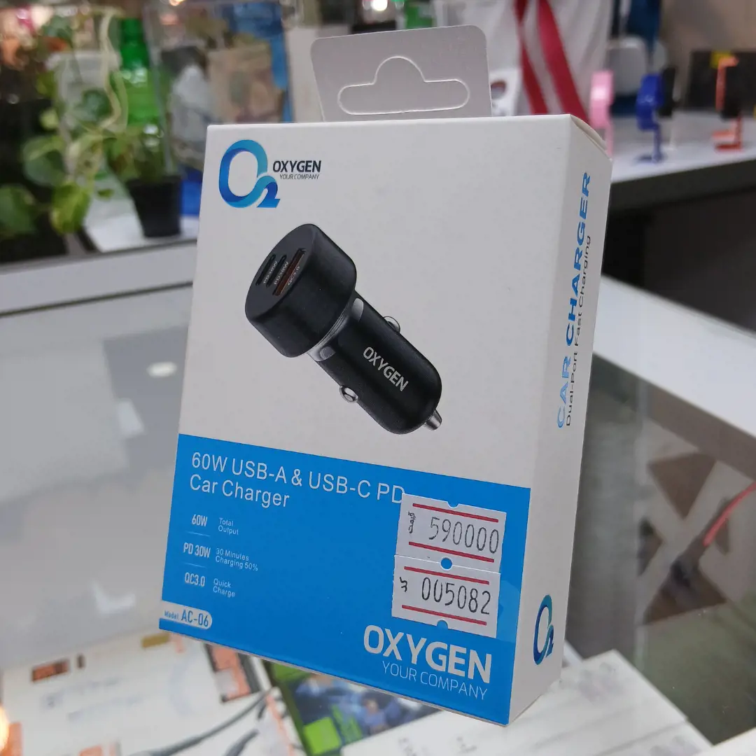 - شارژر فندکی فست و PD سه پورت Oxygen مدل AC-06 60W