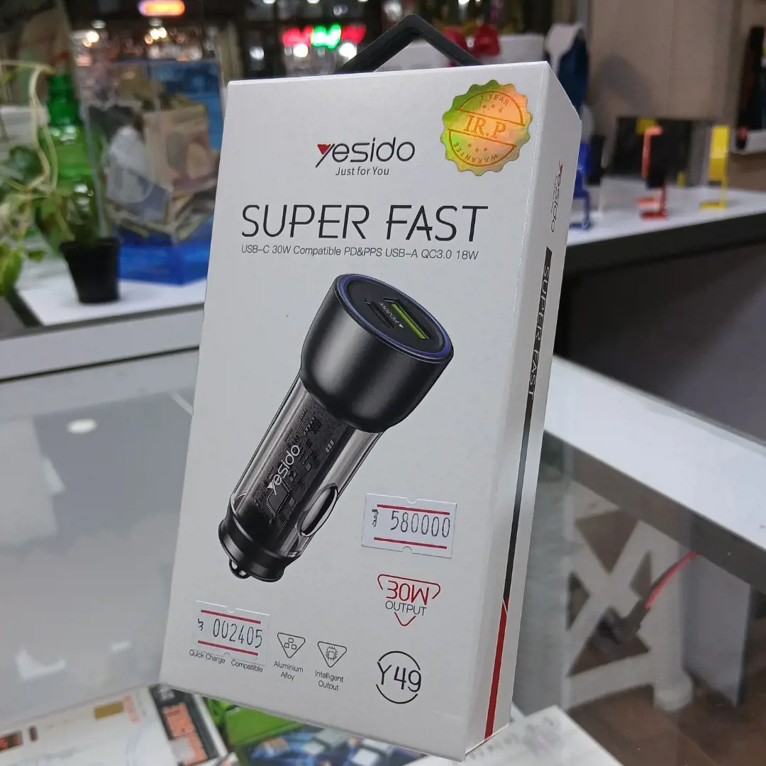 شارژر فندکی فست شارژ Yesido Y54 3A QC4.0 PD3.0 30W + کابل تبدیل آیفونی