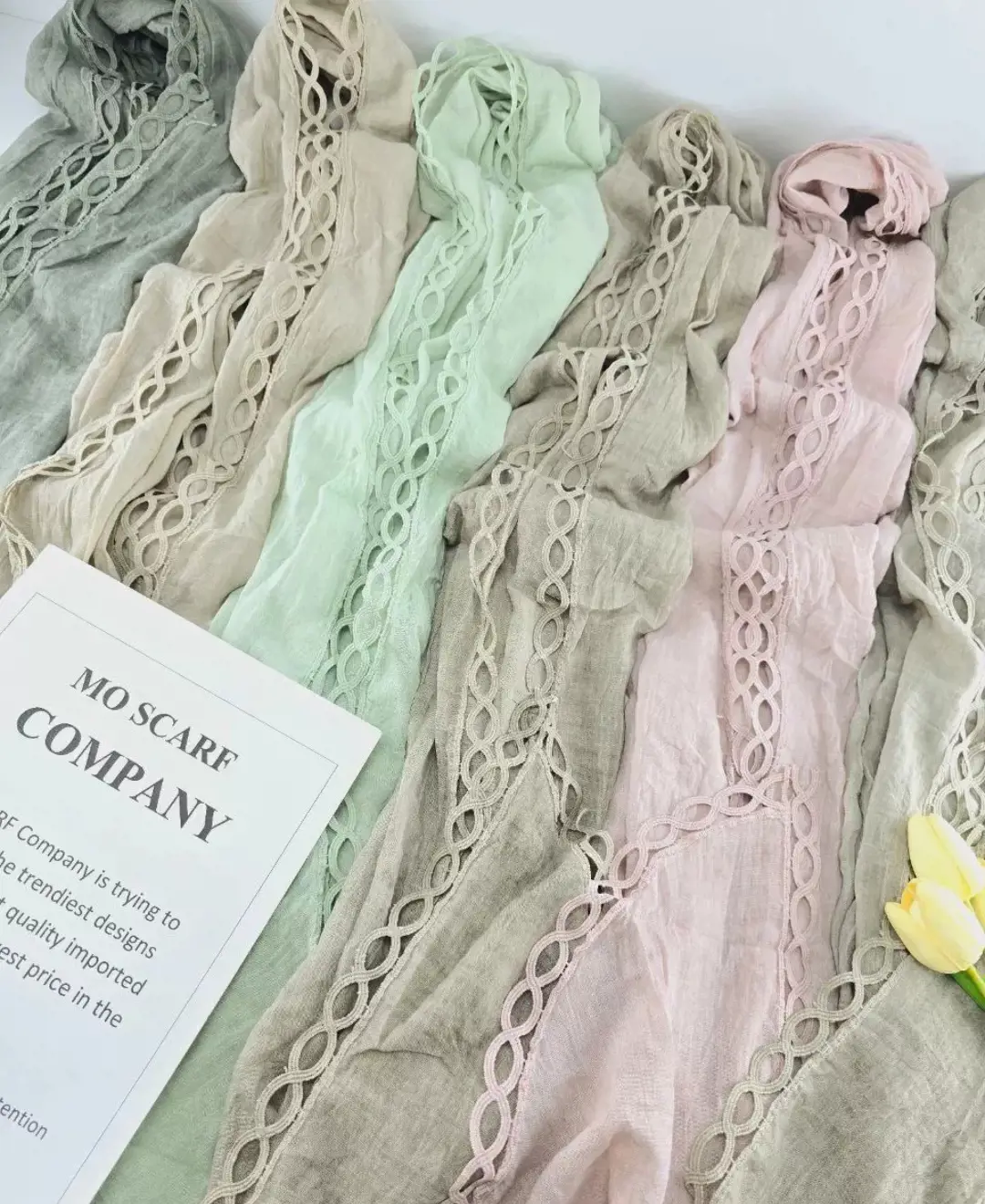 شال دانتل وارداتی شال ترکیبی سوپرنخ و گیپور دور دانتل دو مدل روی سر قرار میگیره خیلی سبک واصلا سر نیست در ۱۲ رنگ کاربردی کولر تابستون اندازه ،