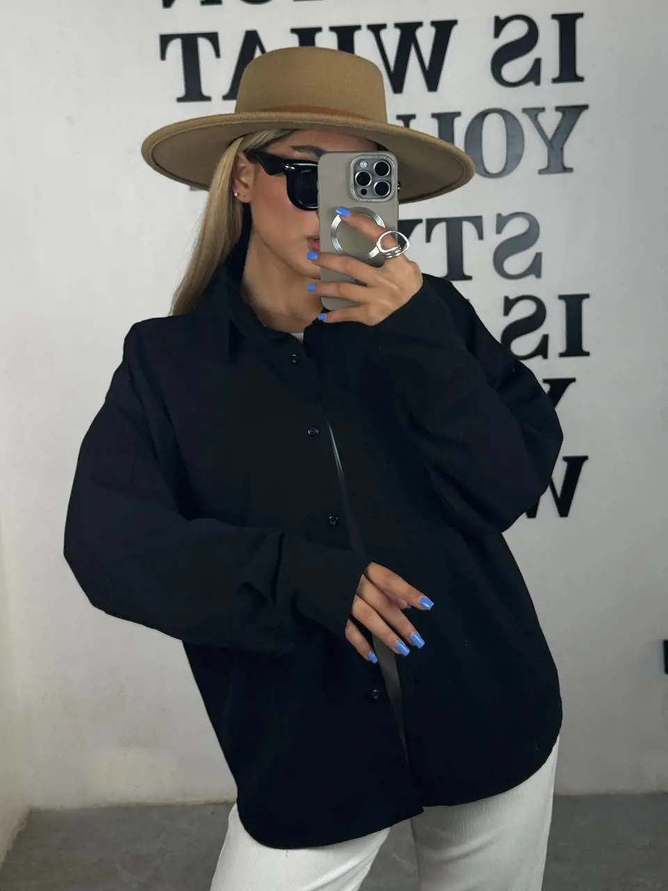 🌼summer 🌼 شومیز مشکی جنس پارچه لینن اسلپ جت بلک می‌باشد رنگبندی مطابق ژورنال   جین۶عددی  سایز Free Size 36~46