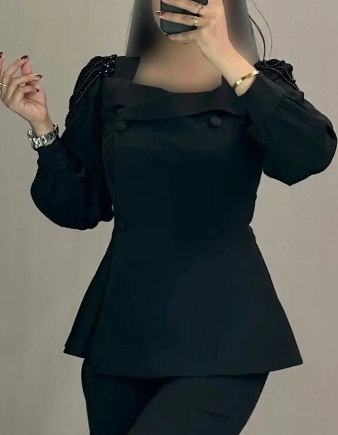 شومیز سر دوش دار جنس مازراتی در دو رنگ مشکی سفید سایر بندی او ۲ و ۳ و ۴