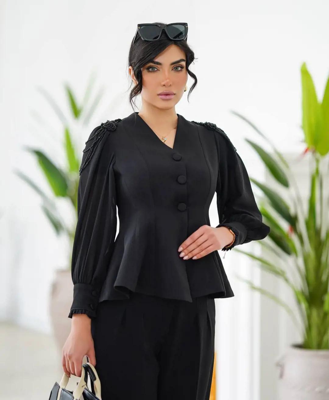 شومیز عروسکی مزونی جنس مازراتی جنس آستین حریر در دو رنگ مشکی سفید