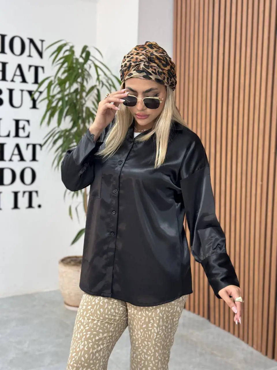 🌸 بهاره 🌸 شومیز ساتن مشکی/سفید جنس پارچه ساتن ال ایکس می‌باشد رنگبندی جذاب و کاربردی جین۸عددی سایز Free Size 36~44