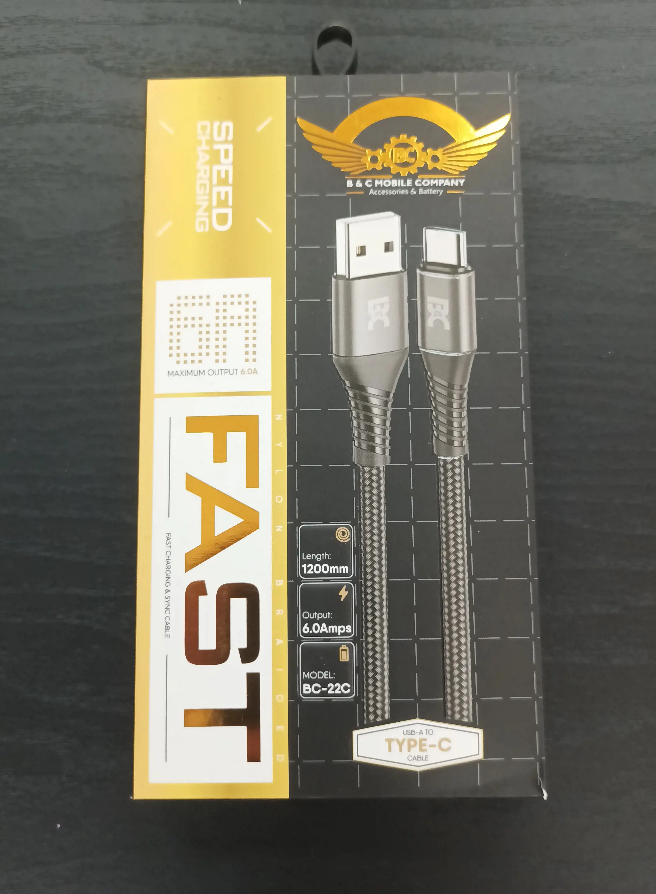 کابل شارژ 2 متری تایپ سی مارک CASTU فست شارژ ، پورت نارنجی ، کابل ضخیم و مقاوم 6 آمپری
