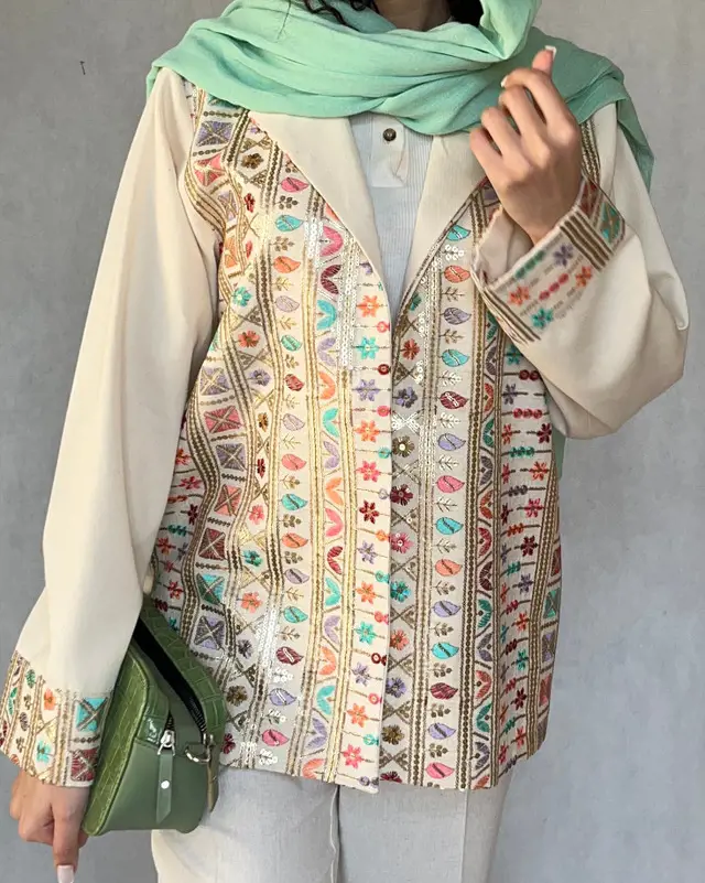 کت کتان زنانه سوزندوزی یقه انگلیسی