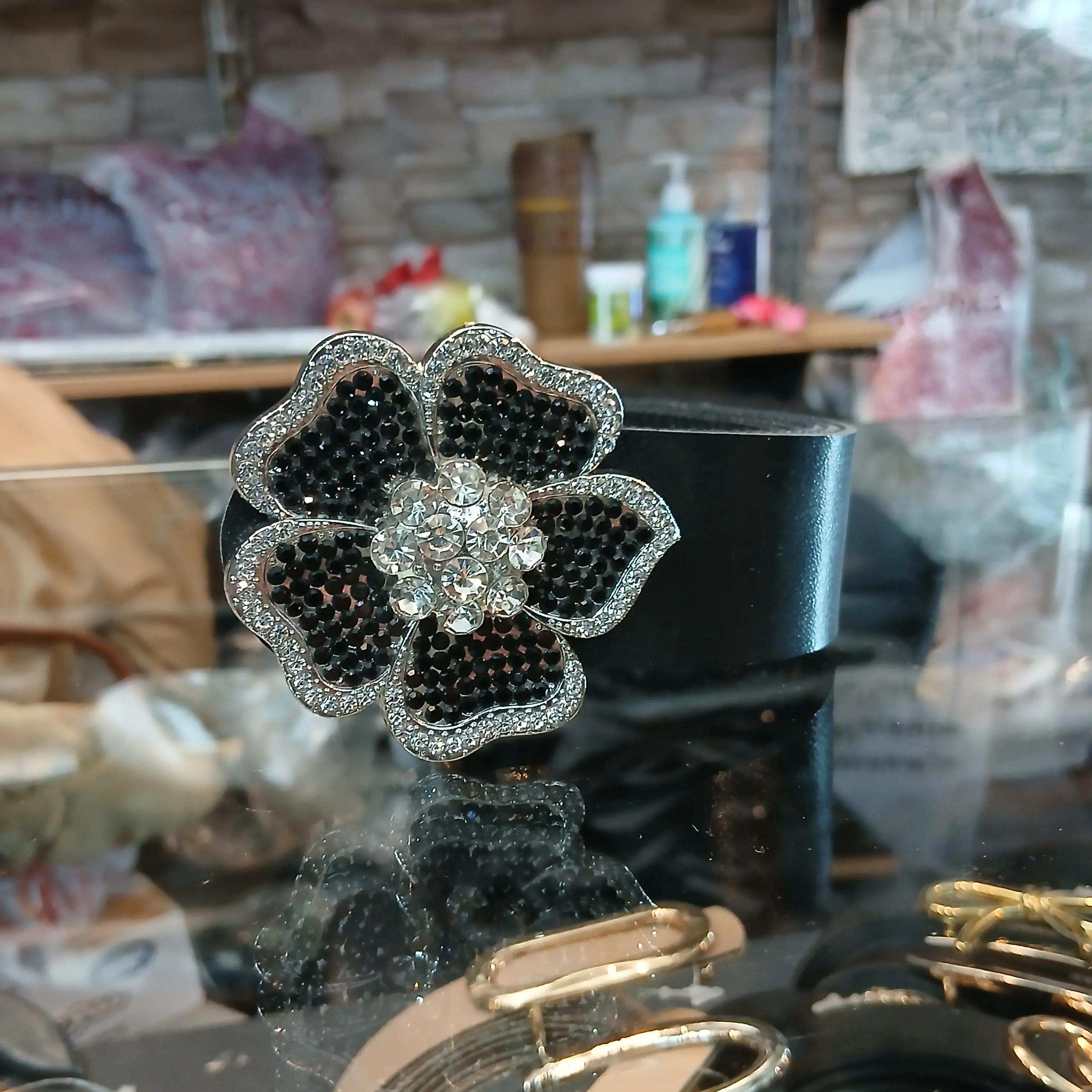 کمربند چرم مصنوعی نگینی