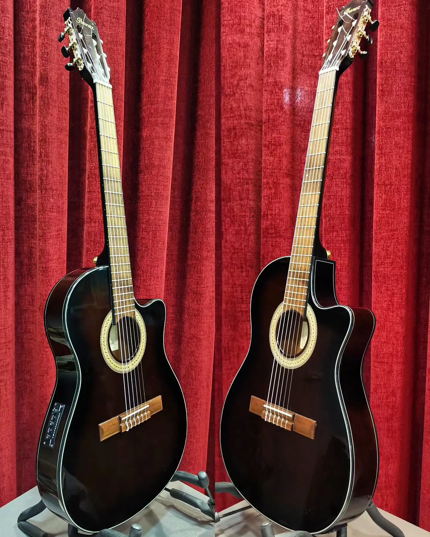 body shape : Thinline Cutaway Classical body top : Spruce top back & sides : Sapele neck : GA nyatoh neck 46mm fretboard : Rosewood with radius bridge : Rosewood inlay : Off-set abalone dot inlay soundhole rosette : Classical Mosaic Design tuning machine : Gold Classical tuners w/Black knobs number of frets : 21 string gauge : .0280/.0322/.0403/.029/.035/.043 pickup : Ibanez AEQ210T preamp w/Onboard tuner output jack : Balanced XLR & 1/4" outputs battery : 9V x1 Scale : 648mm/25.5"